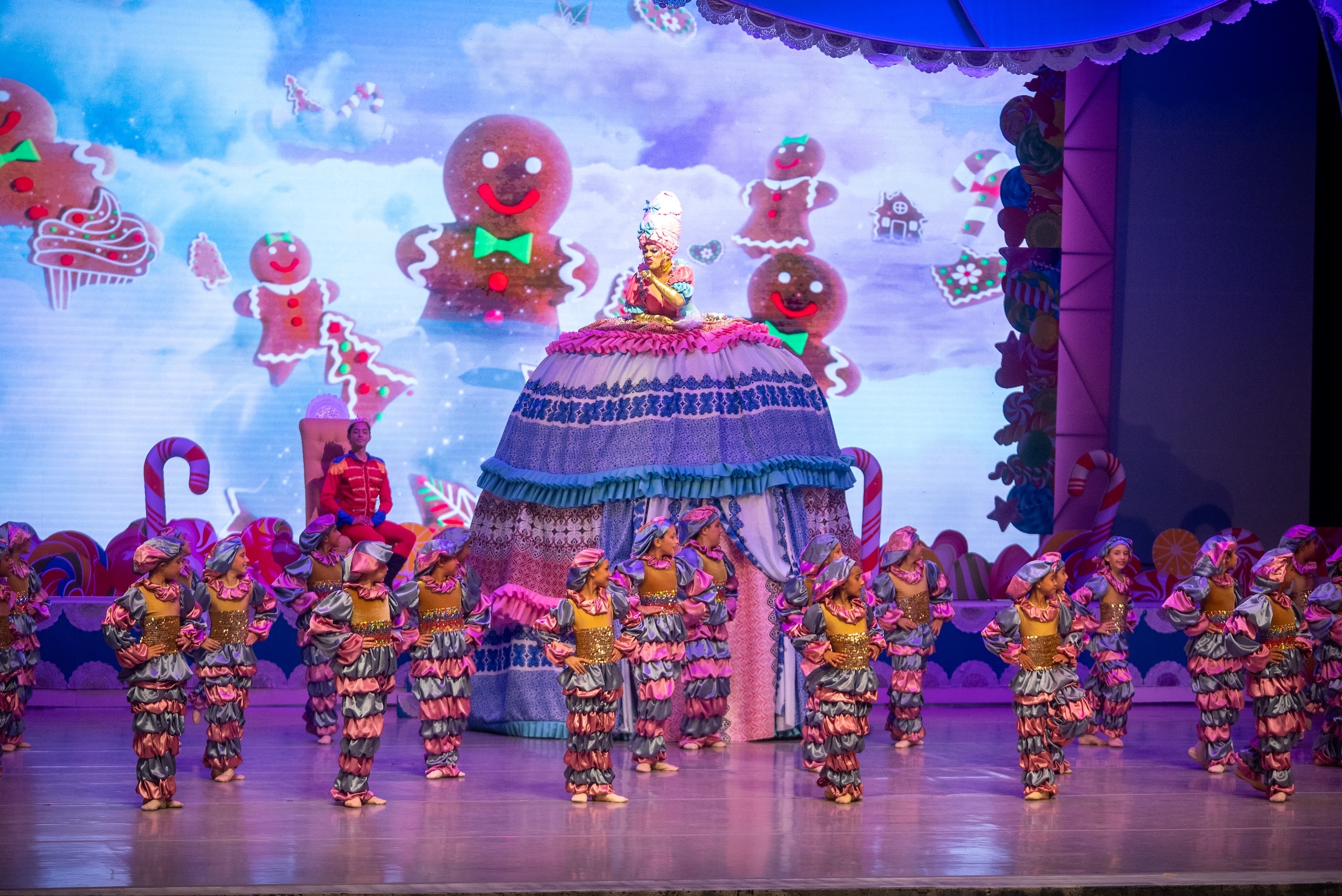 En el segundo acto, el público se sumergió en el mágico Reino de los Dulces Sueños, un lugar gobernado por la benévola Hada de Azúcar; ella recibe a Clara y al Cascanueces y en la celebración por su victoria sobre el malvado Rey Ratón, los corona como invitados de honor.