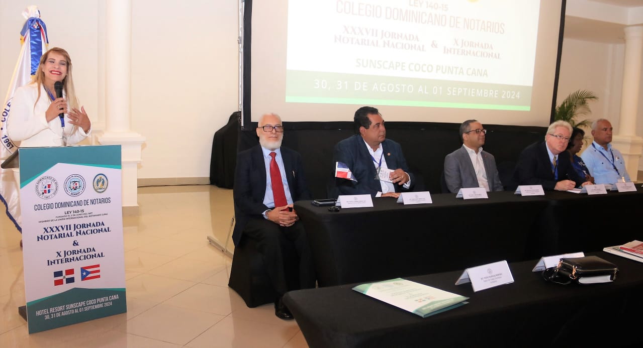 La dirigente pronunció las palabras de apertura de la XXXVII Jornada Notarial Nacional y X Jornada Internacional, que efectuó este fin de semana, Sunscape Coco Punta Cana, con más 260 miembros para actualizarse sobre los temas más relevantes del derecho notarial y compartir experiencias profesionales.