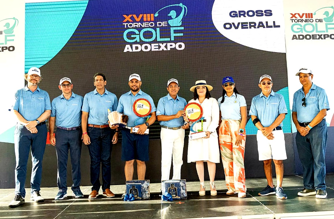 Punta Cana, La Altagracia.- El equipo integrado por Rafael García y Luis Rafael Tejada logró el mejor “score gross overall” de la XVIII edición del Torneo de Golf Adoexpo 2023, y obtuvo la gran copa de este evento deportivo anual de la Asociación Dominicana de Exportadores.